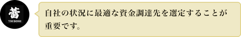 短期的な資金不足への対応と、長期的な成長を見据えてバランスを考え、資金調達を実施することが大切です。